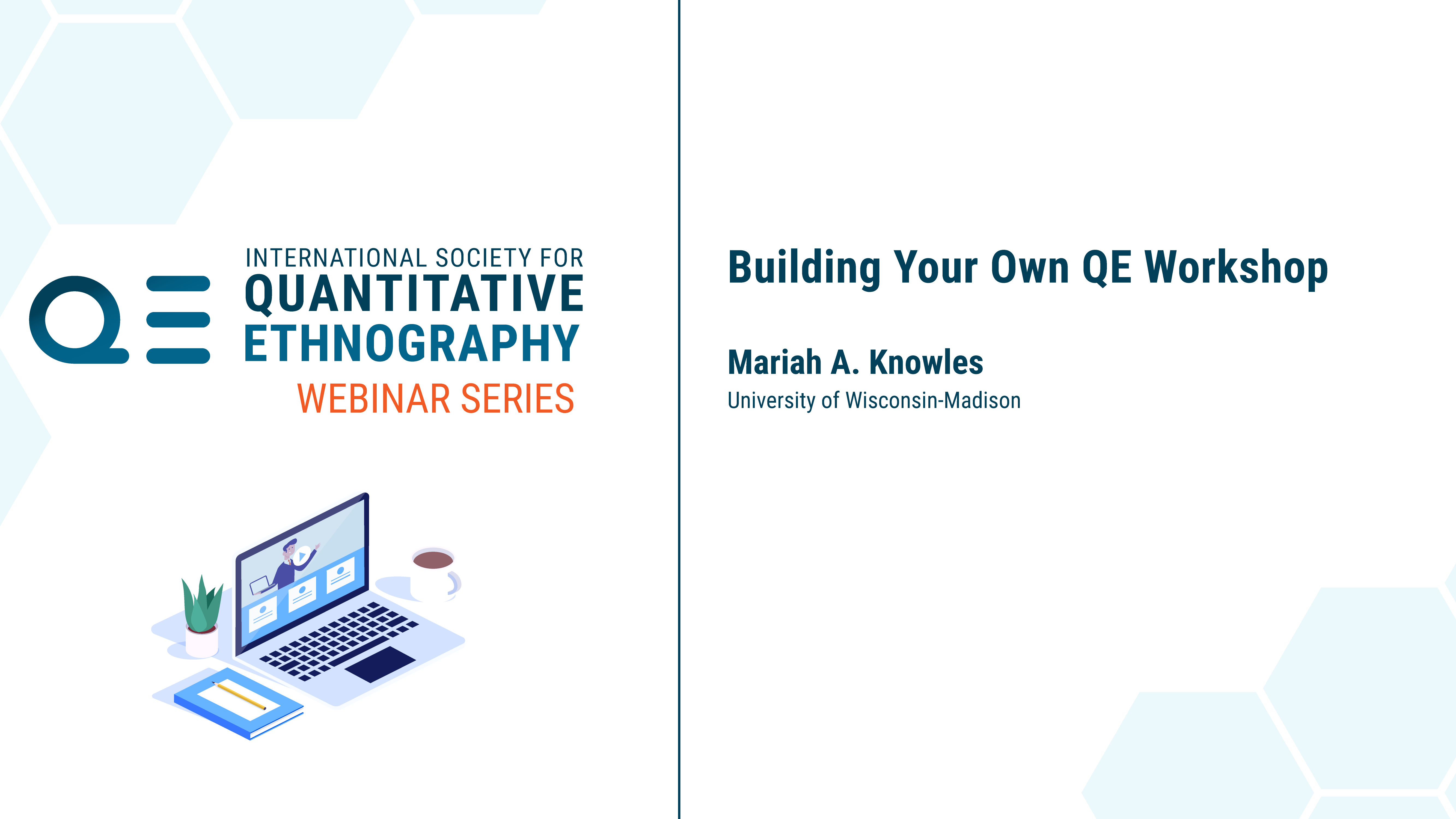 Join Amanda Barany, Golnaz Arastoopour Irgens, and David Wiliamson Shaffer as they discuss their experiences teaching Quantitative Ethnography courses at their respective universities. The QE instructors will share successes and challenges developing an introductory QE course and what these courses can mean for shaping the QE community. This webinar will be in a "podcast" discussion style. In the first half, the three participants will ask each other questions and engage in a discussion. In the second half, the participants will take questions from the audience.