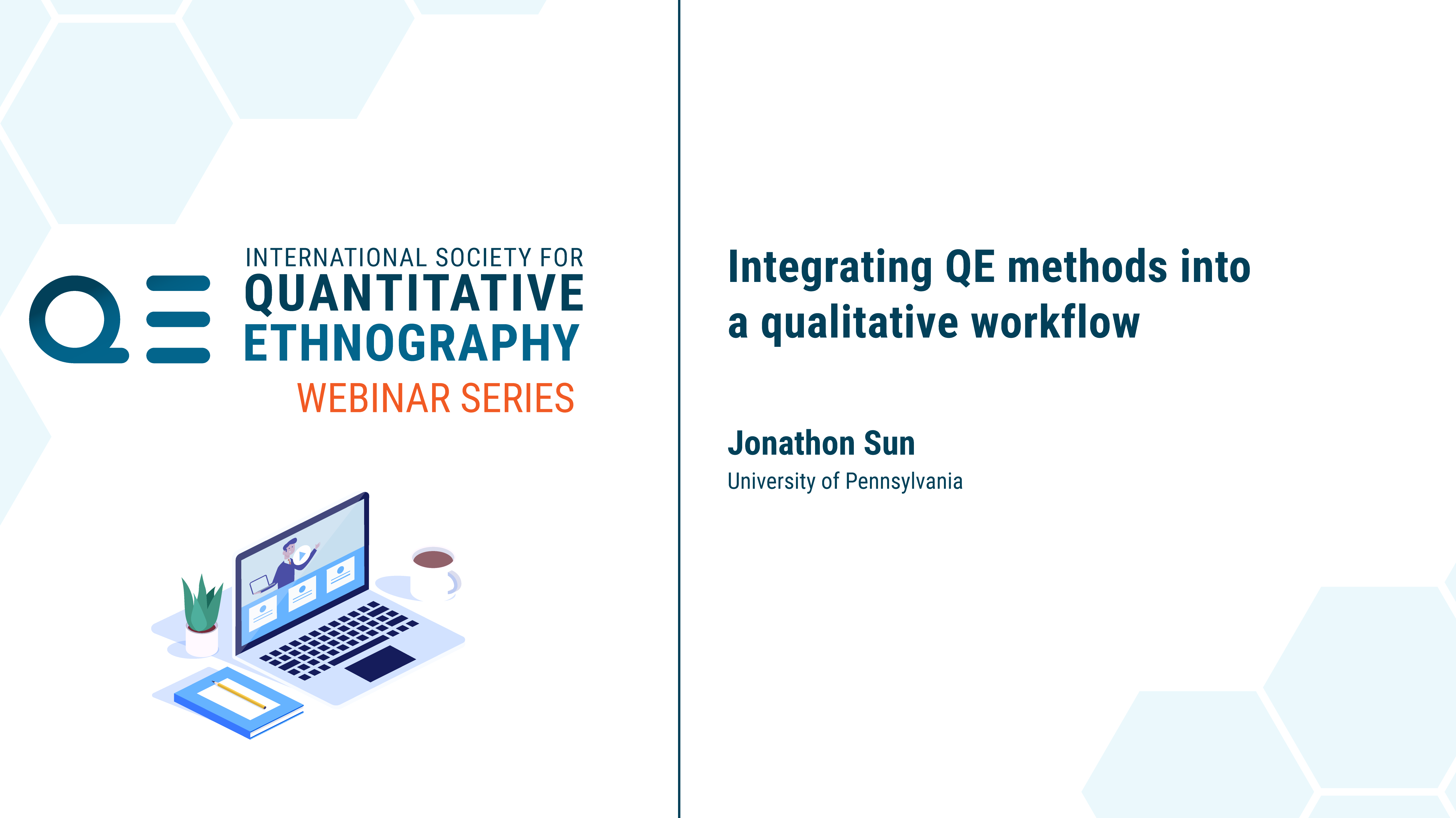 This webinar will introduce the idea of Participatory Quantitative Ethnography (PQE) in which research participants are given active roles in meaning making. The session will draw on examples from a number of different research projects which have begun to use different PQE techniques. From these examples opportunities and challenges associated with new tools and methods along with ethical issues associated with participant involvement in the QE process will be raised in the hope they spark fruitful conversations and collaborations that advance explorations and understandings of PQE.
